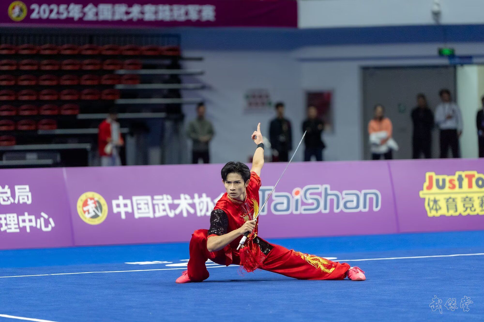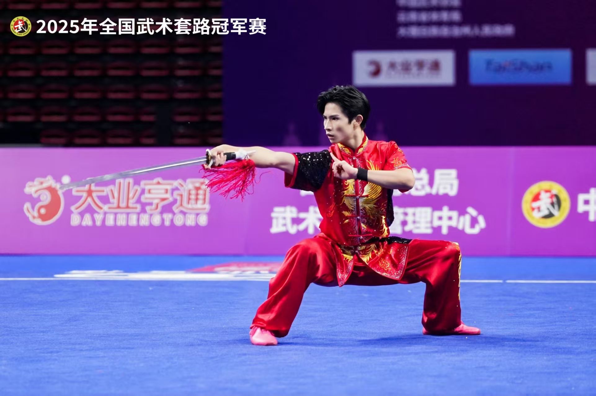 10月16日晚18时30分,全国武术套路冠军赛男子剑术项目正式开赛。来自全国各地的30名顶尖选手汇聚赛场,竞逐最高荣誉。王琅可登场后气势非凡,手中长剑流光闪烁,招式行云流水、刚柔并济。他的剑术兼具力量与灵动之美,充分展现出中华武术的神韵与精魂。凭借高超的技术与稳定的发挥,王琅可以绝对优势摘得男子剑术金牌,赢得现场观众与裁判的一致喝彩。