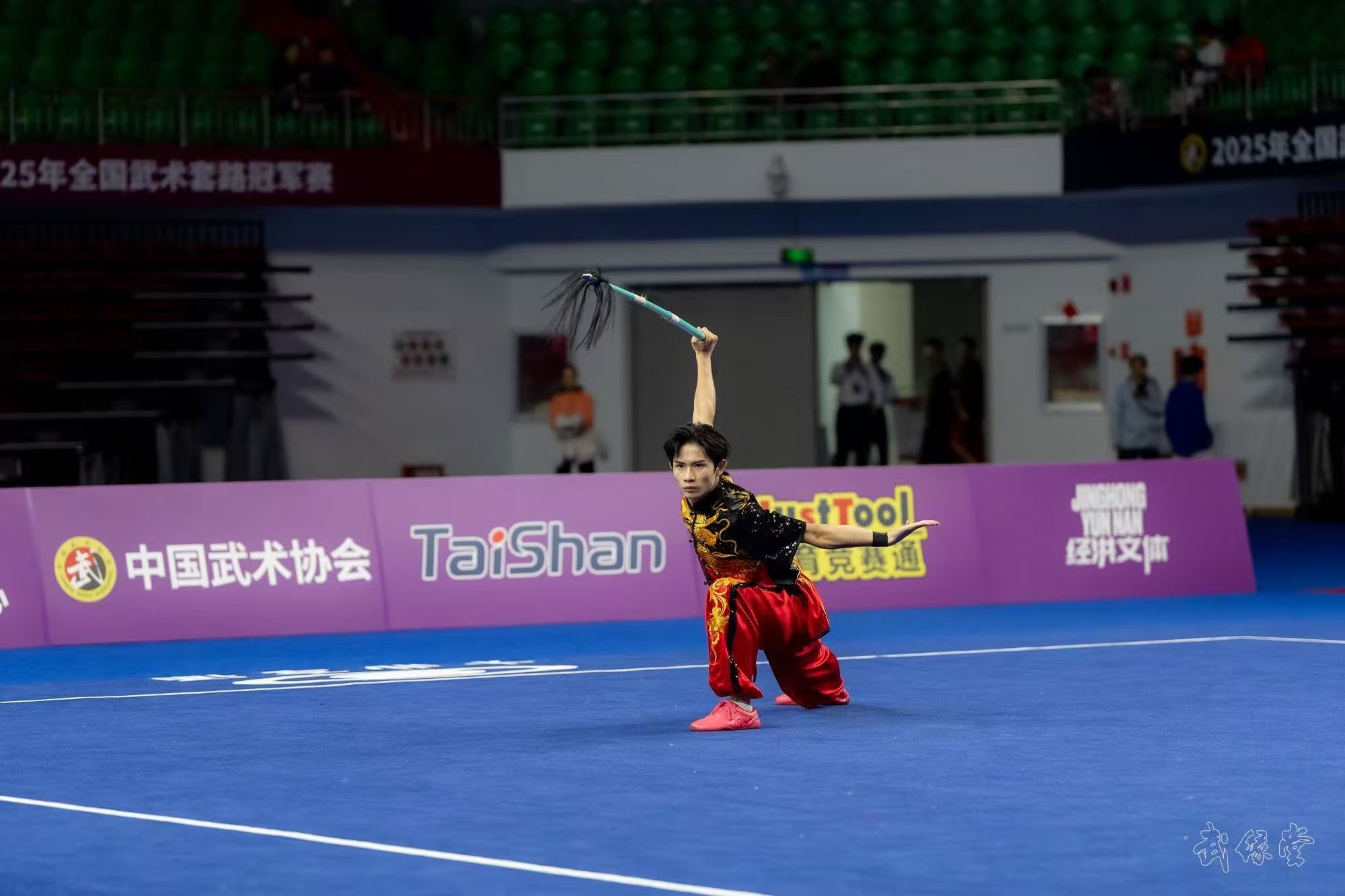 10月17日,男子枪术项目激战再起。面对强劲的对手,王琅可再次出场,他舞动长枪,如蛟龙出海、势若惊雷。动作行云流水间蕴含力量之美,刚劲有力又不失灵活多变。凭借精准的技术与稳健的节奏控制,他再度以高分登顶,斩获男子枪术冠军,实现了全国冠军赛“双冠王”的壮举。