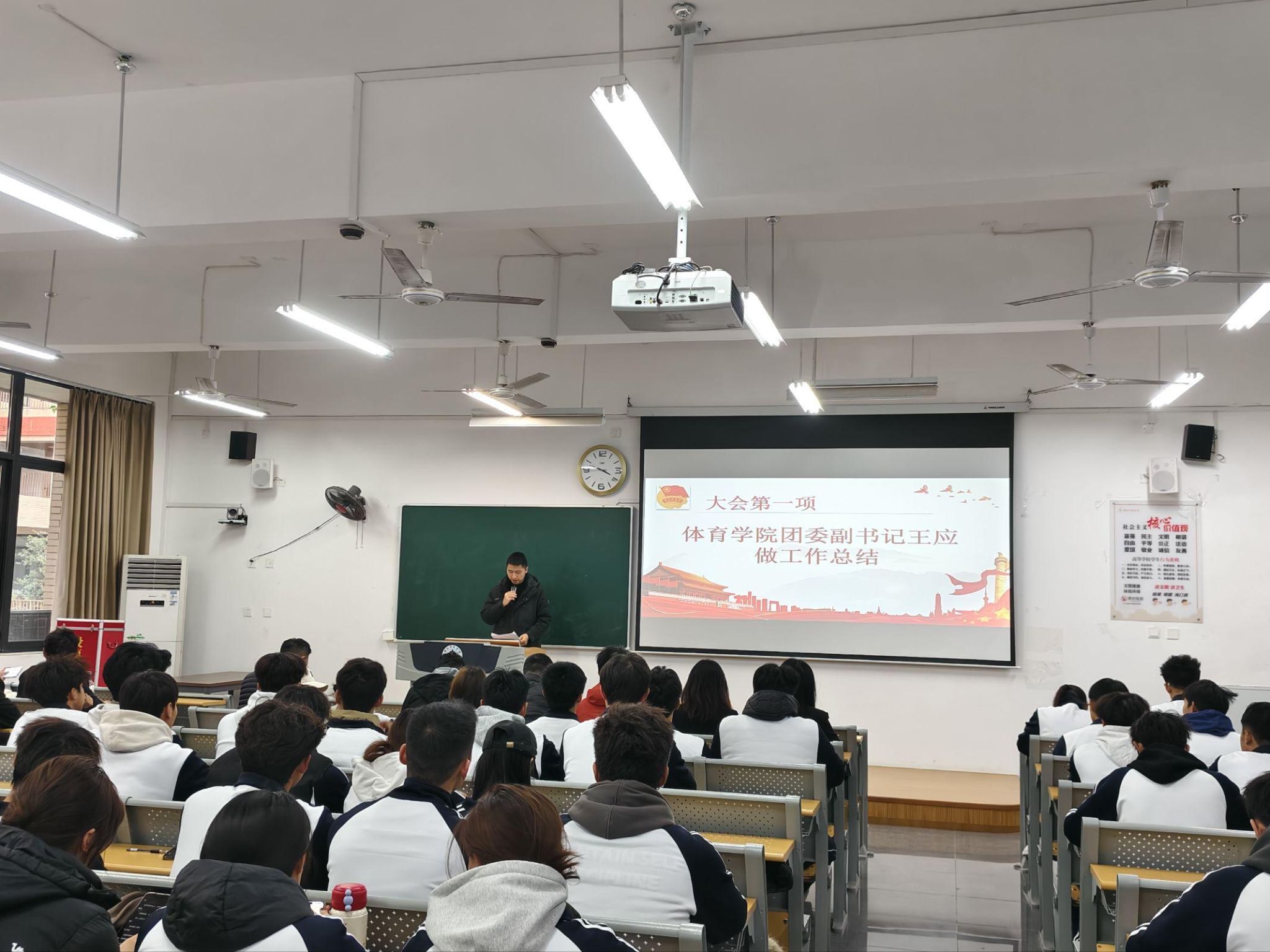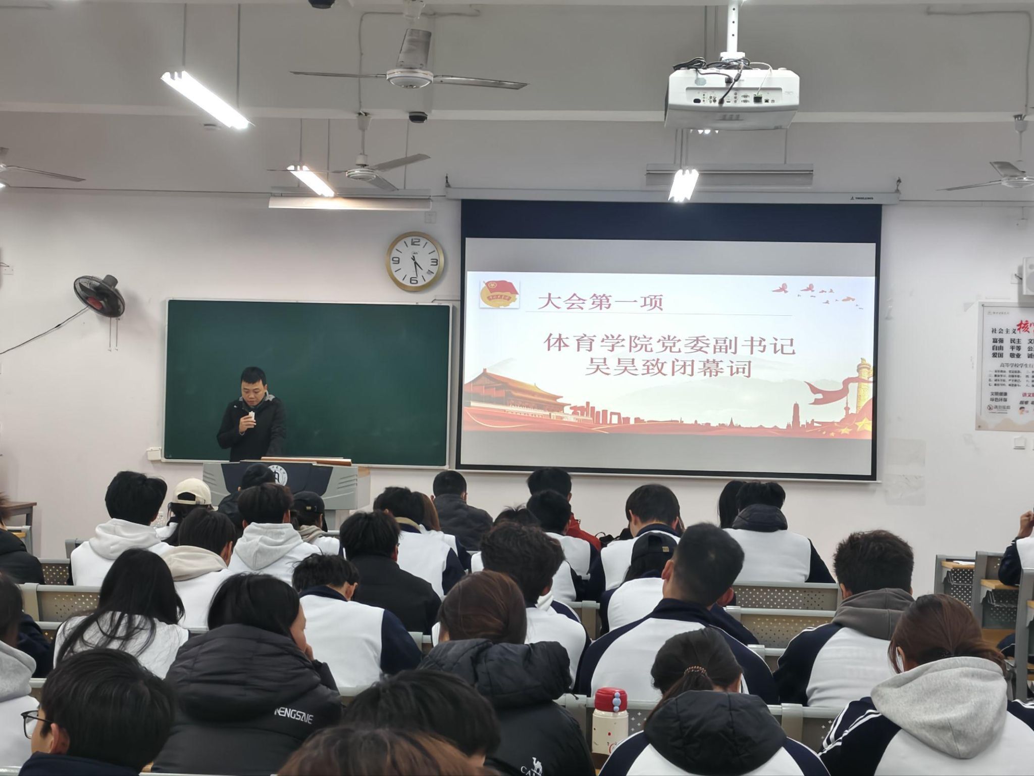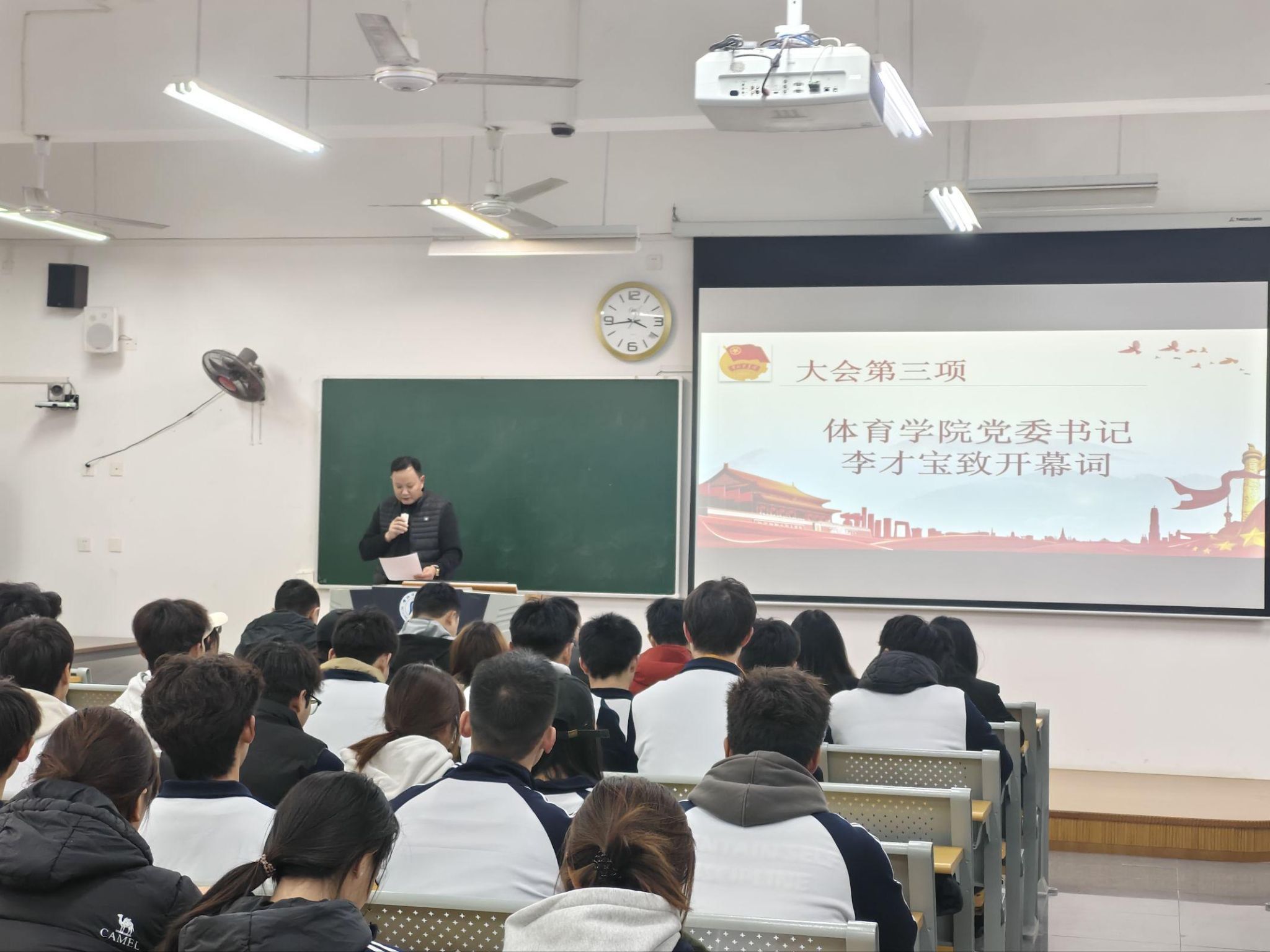 2025年11月18日,体育学院第五次学生代表大会在明德楼B101室隆重召开。体育学院党委书记李才宝,党委副书记,纪委书记吴昊、团委副书记王应,学工办李鹏、李宜夏、李鹏程老师,校团委学生会主席团成员李家姚、团委宣传部负责人李彰秀等出席大会,98名学生代表齐聚一堂,共商学院学生工作发展大计。
