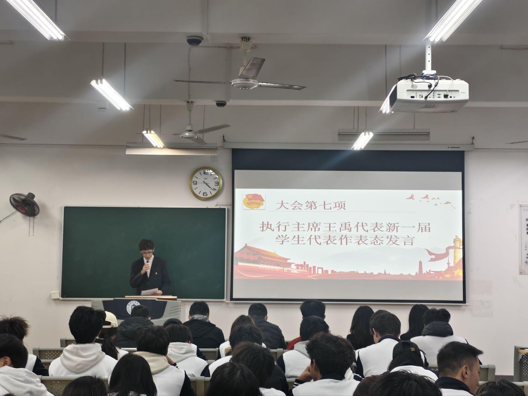 新当选的学生代表王禹作表态发言。他表示,将不负全体代表的信任,认真履行代表职责,积极反映同学诉求,为推动学院学生工作发展和校院联动贡献力量。