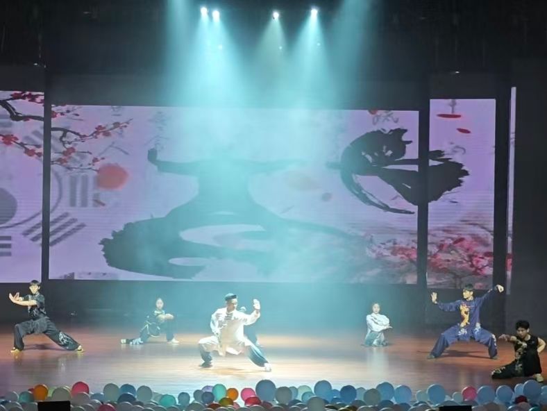 开场前,晚会组织全体同学开展反诈宣传,用实用知识为师生筑牢安全防线。随后,健美操《大体协》以跃动节奏点燃全场热情,正式拉开晚会帷幕。时装走秀《炫彩》展现青春格调,小品《反诈联盟》以诙谐剧情拆解诈骗套路,歌曲《鲜花》传递少年赤诚,礼仪展示《星芒初绽·礼韵行》彰显学子刚柔并济的风貌;光幕剧《觉醒年代》复刻跨越时空的信仰力量,舞蹈《小河淌水1952》触摸时光里的家国深情,情景剧《党旗在心中》重温赤诚初心,歌曲《我爱你中国》唱响炽热家国情怀;《肌肉秀》展现力与美的碰撞,合唱《夜空中最亮的星》引发逐梦共鸣,舞蹈《暗夜灼光》诠释青春坚守,武术表演《峨眉武魂》彰显中华武术魅力;礼服走秀《Gimme more》演绎优雅与张扬,串烧舞蹈《第一天》书写青春华章,邓意杭老师的独唱《海阔天空》温暖人心,舞蹈《Dancing Moment》点燃收官热情。