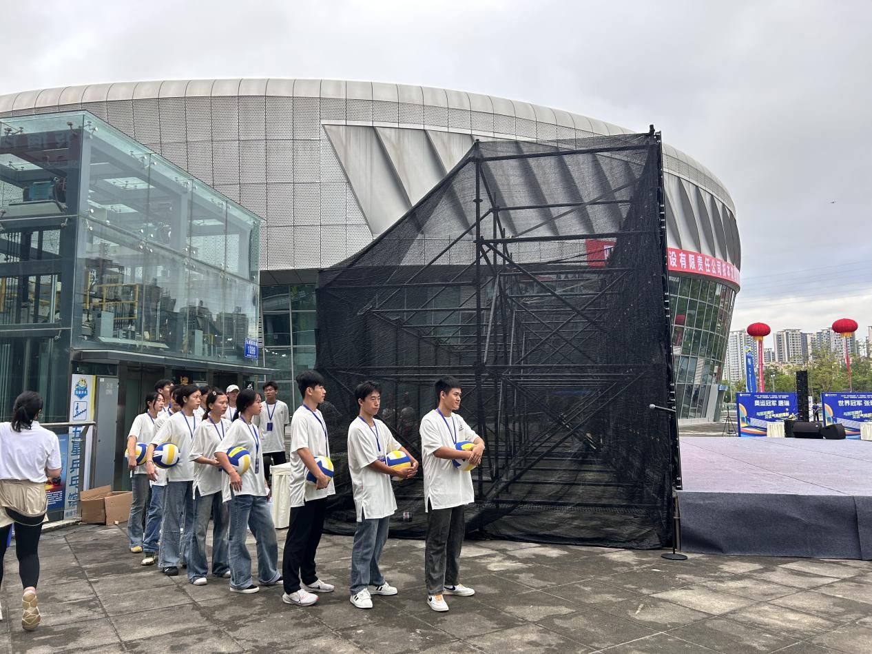 本次赛事规模宏大,吸引全国119支代表队、逾1200名运动员参赛,创新推出的气排球“八进”活动将赛场延伸至商圈、景区、厂区等八大场景,对志愿服务的专业性与场景适配能力提出了极高要求。为保障服务质量,体育学院提前组建志愿服务团队,围绕气排球竞赛规则、场地器材调试、应急处置流程、礼仪接待规范等开展专项培训,确保50名志愿者精准匹配赛事各岗位需求。