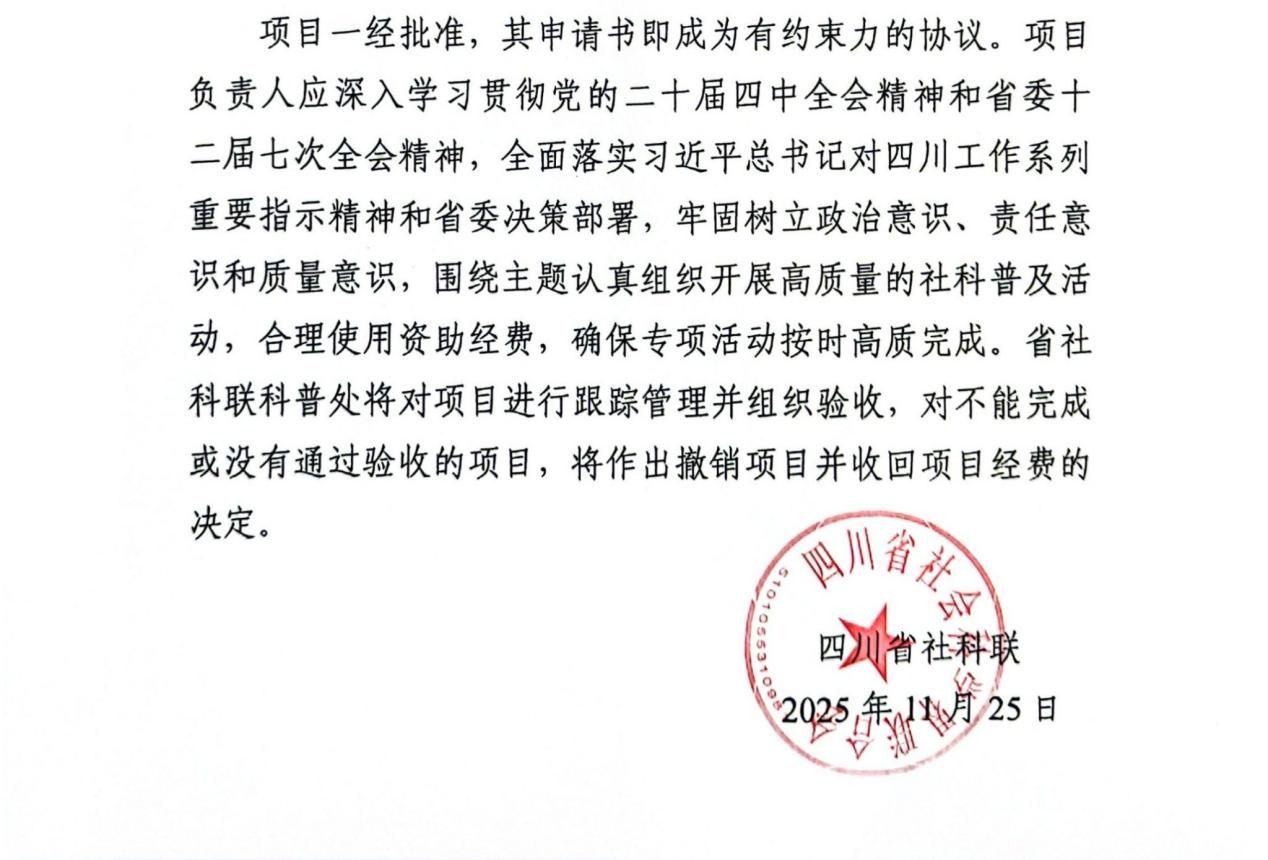 根据立项通知书要求,该项目申请书将作为约束性协议,谭伟平教授团队将围绕“推进文旅深度融合”主题,深入贯彻相关会议精神,高质量开展峨眉武术经典技法惠民手册的编写、推广等活动,并接受省社科联科普处的跟踪管理与最终验收。